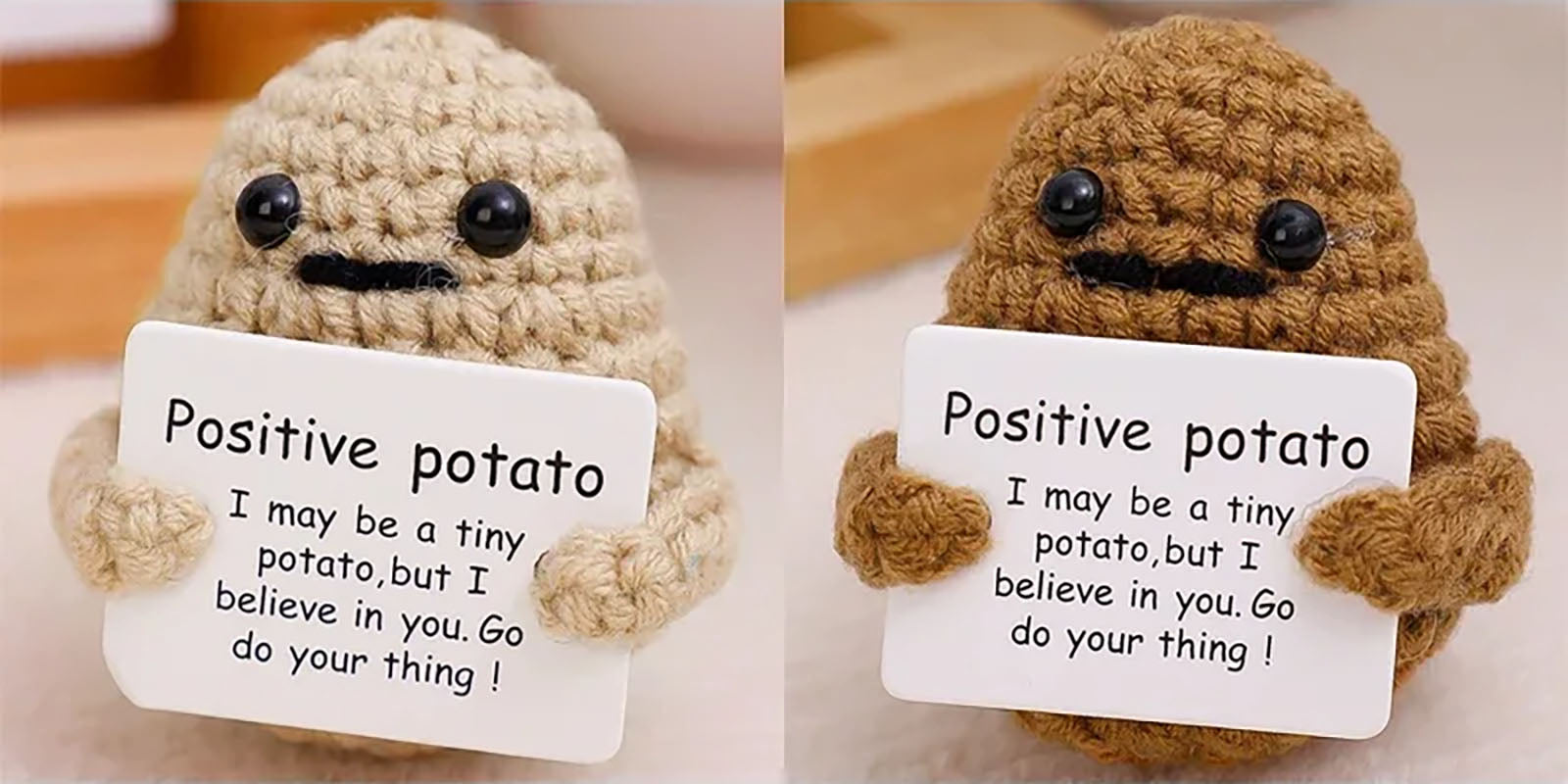 In a world full of routine and challenges, our hand-knitted Positive Potato stands out as a beacon of encouragement. This adorable spud isn't just a plushy friend; it's a tiny messenger of positivity, reminding you to embrace each day with confidence.