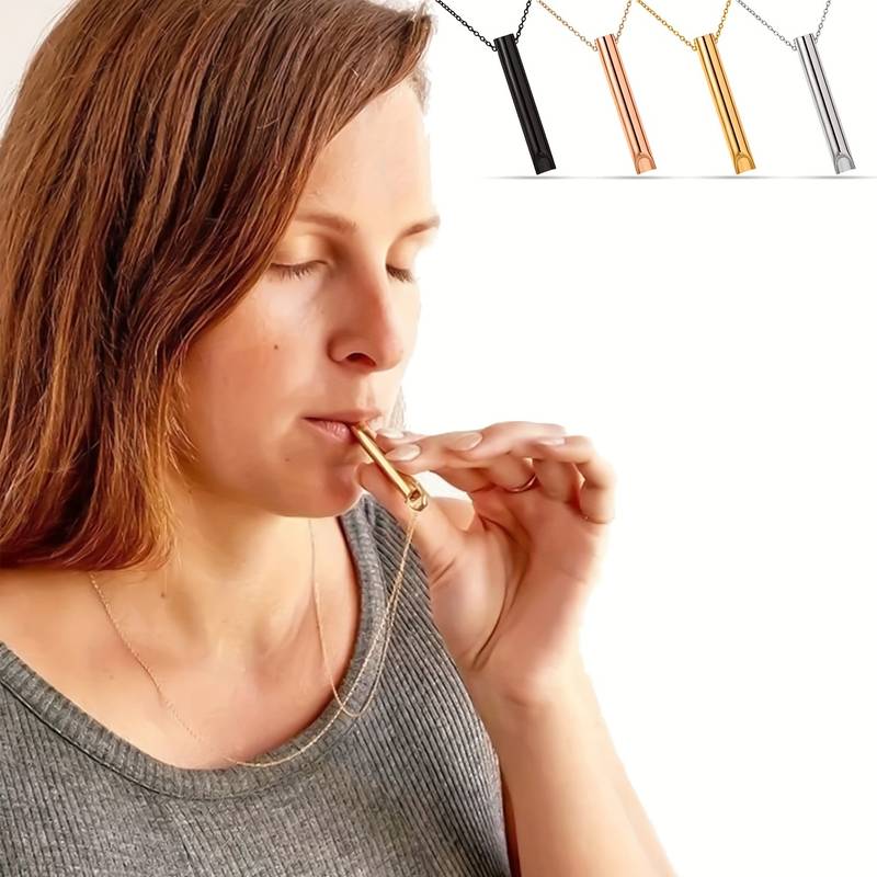 The necklace encourages deep, slow breathing, which triggers the body's relaxation response. As you wear the necklace, take a moment to breathe in and out slowly, focusing on the rhythmic motion.
